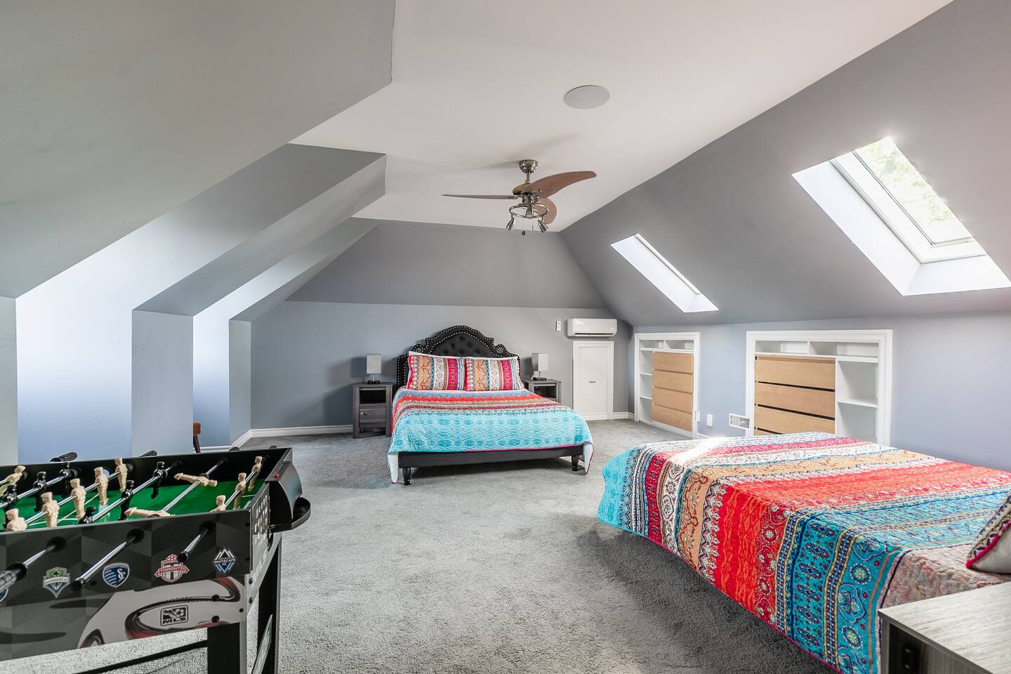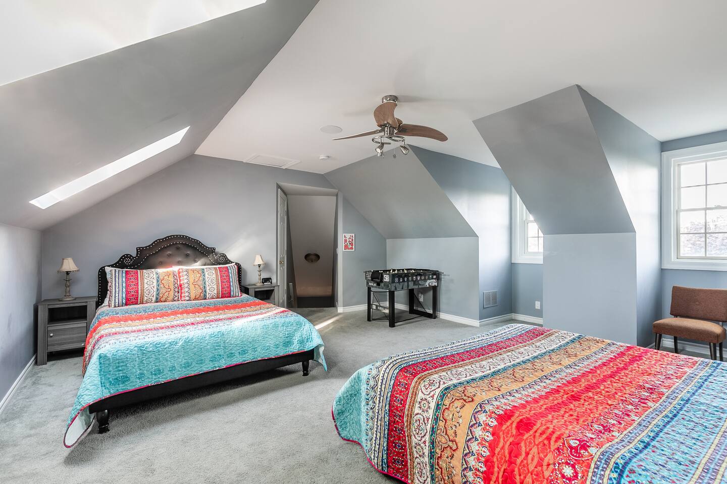Enjoy the serene outdoor patio next to a unique heated saltwater swimming pool, and explore numerous wineries or visit the world-renowned Niagara Falls in Canada during your stay. Victoria Villa boasts three modernized bathrooms, five generously sized bedrooms, and accommodates up to 12 guests comfortably, making it an excellent choice for your vacation, corporate retreat, or extended executive stay. This welcoming villa offers all the amenities you need to feel completely at ease. You'll find a fully equipped kitchen with provisions such as tea, coffee, a kettle, coffee maker, and toaster. Additionally, there's a washer and dryer with necessary supplies, as well as a bathroom stocked with towels, shampoo, conditioner, body wash, a hair dryer, and other toiletries, ensuring a convenient and enjoyable stay.